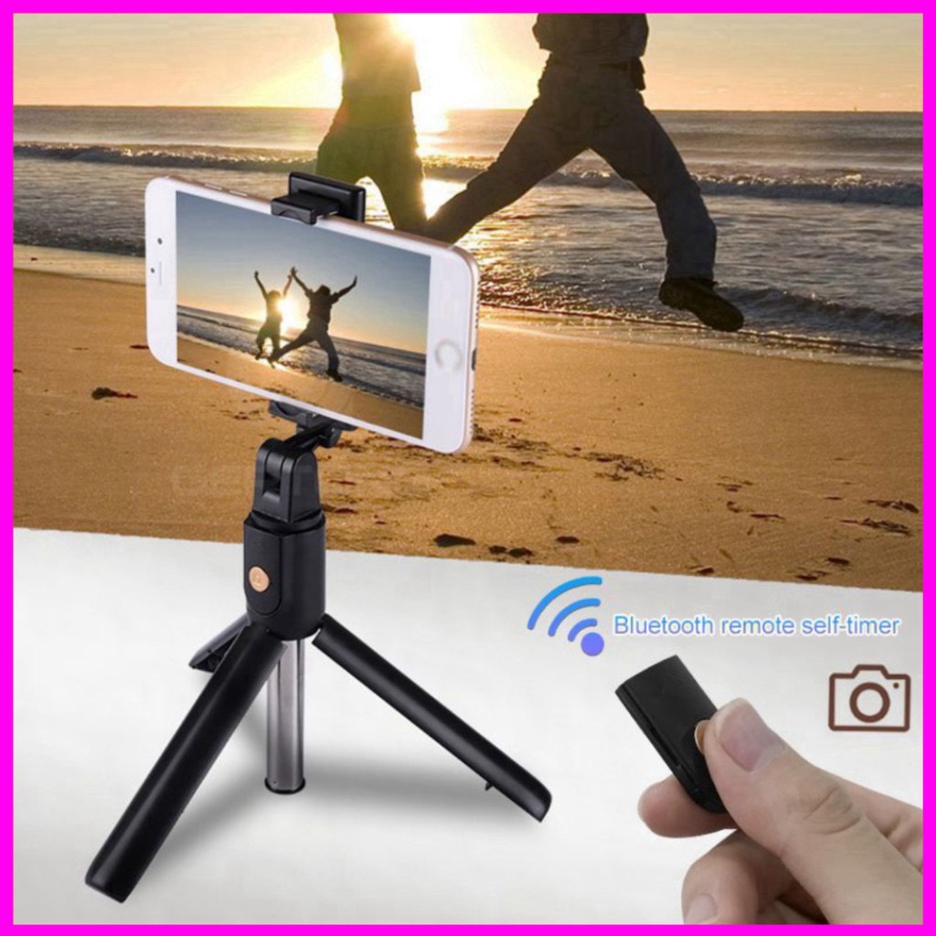 ****Gậy chụp ảnh selfie hỗ trợ kết nối bluetooth không dây kiêm giá đỡ ba chân mini tiện dụng dành cho điện thoại thông minh iOS Android