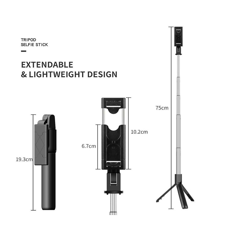 - Selfie đỉnh cao với gậy chụp ảnh Q07 kiêm tripod siêu gọn nhẹ, chắc chắn. Nút bấm điều khiển từ xa giúp bạn tự lưu lại những bức ảnh chuyên nghiệp mà không cần nhờ người khác giúp đỡ.