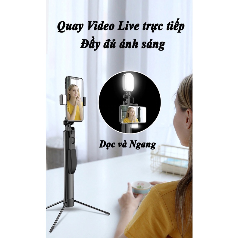 Gậy Chụp Ảnh Siêu Dài Tripod siêu dài 1m6 cứng cáp A21 tích hợp Remote Bluetooth, đèn chiếu sáng LED
