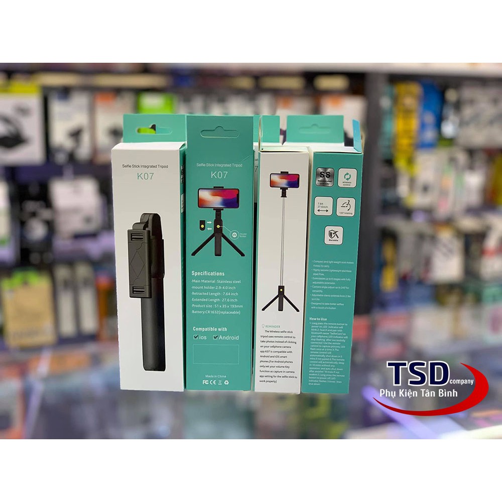 Điện Thoại & Phụ Kiện > Phụ kiện > Phụ kiện selfie > Gậy selfie || Gậy Chụp Ảnh Tripod 3 Chân K07 Kết Nối Bằng BluetoothCòn hàng