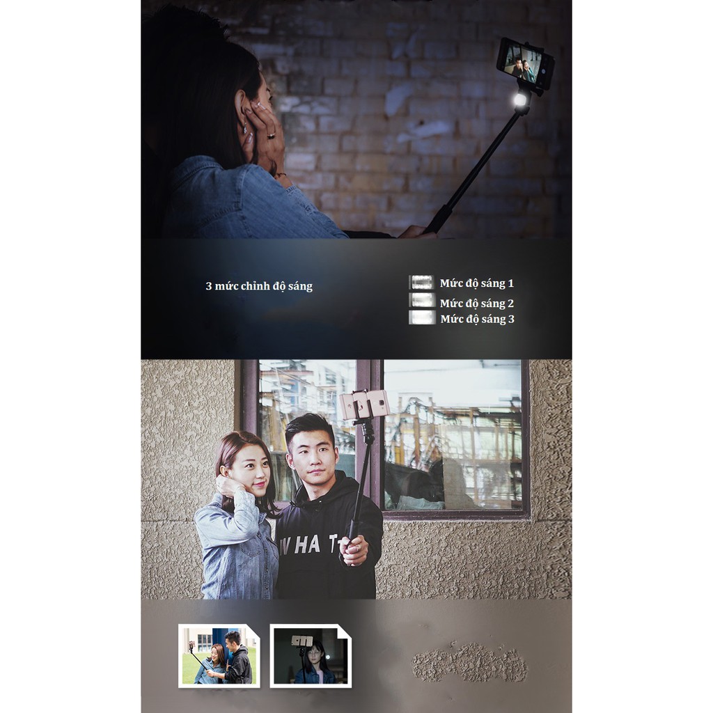 Gậy chụp ảnh tự sướng LIVEMAN S1 Selfie stick có đèn led bù sáng nhằm tăng độ sáng và chất lượng ảnh chụp