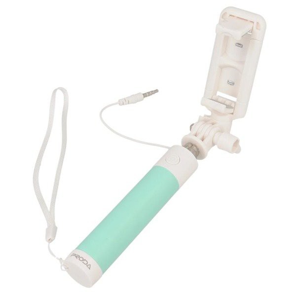 Sản phẩm kết nối với điện thoại bằng dây có sẵn trên gậy. Chỉ cần cắm dây vào jack điện thoại và bấm nút chụp trên thân trên thân gậy là bạn đã có ngay những bức ảnh selfie.