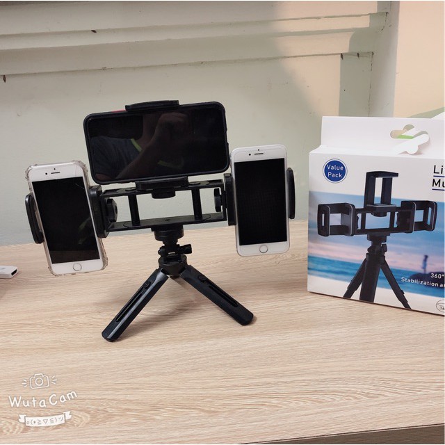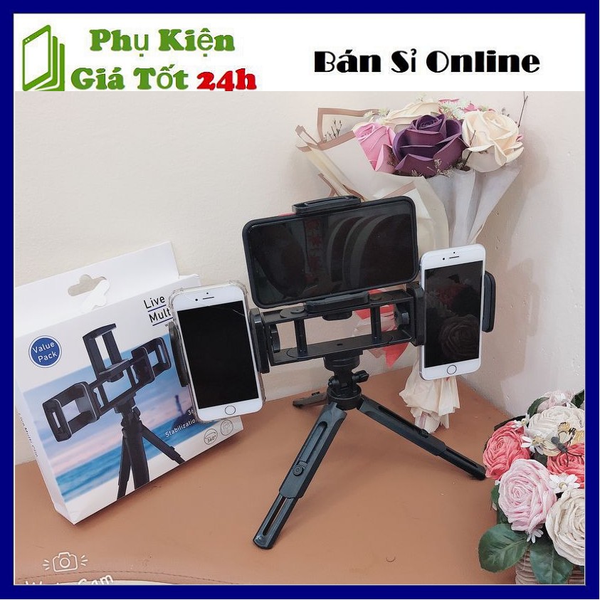 - Sản phẩm có 3 đầu kẹp điện thoại thoải mái livestream bán hàng online hay làm việc ...