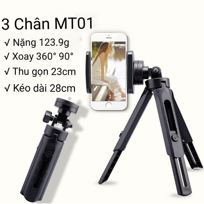 - Là một nhiếp ảnh gia hay chỉ đơn thuần là đam mê chụp ảnh thì cũng không thể thiếu cho mình một chiếc chân máy ảnh được vì nó sẽ giúp cho bạn có những bức ảnh đẹp hơn, thuận tiện hơn trong việc chỉnh góc, quay phim hay chụp ảnh gia đình. Vì thế shop xin mang đến cho bạn 1 sản phẩm mới đó chính là Giá Đỡ Điện Thoại 3 Chân Tripod Support MT01 Xoay 360 Độ.