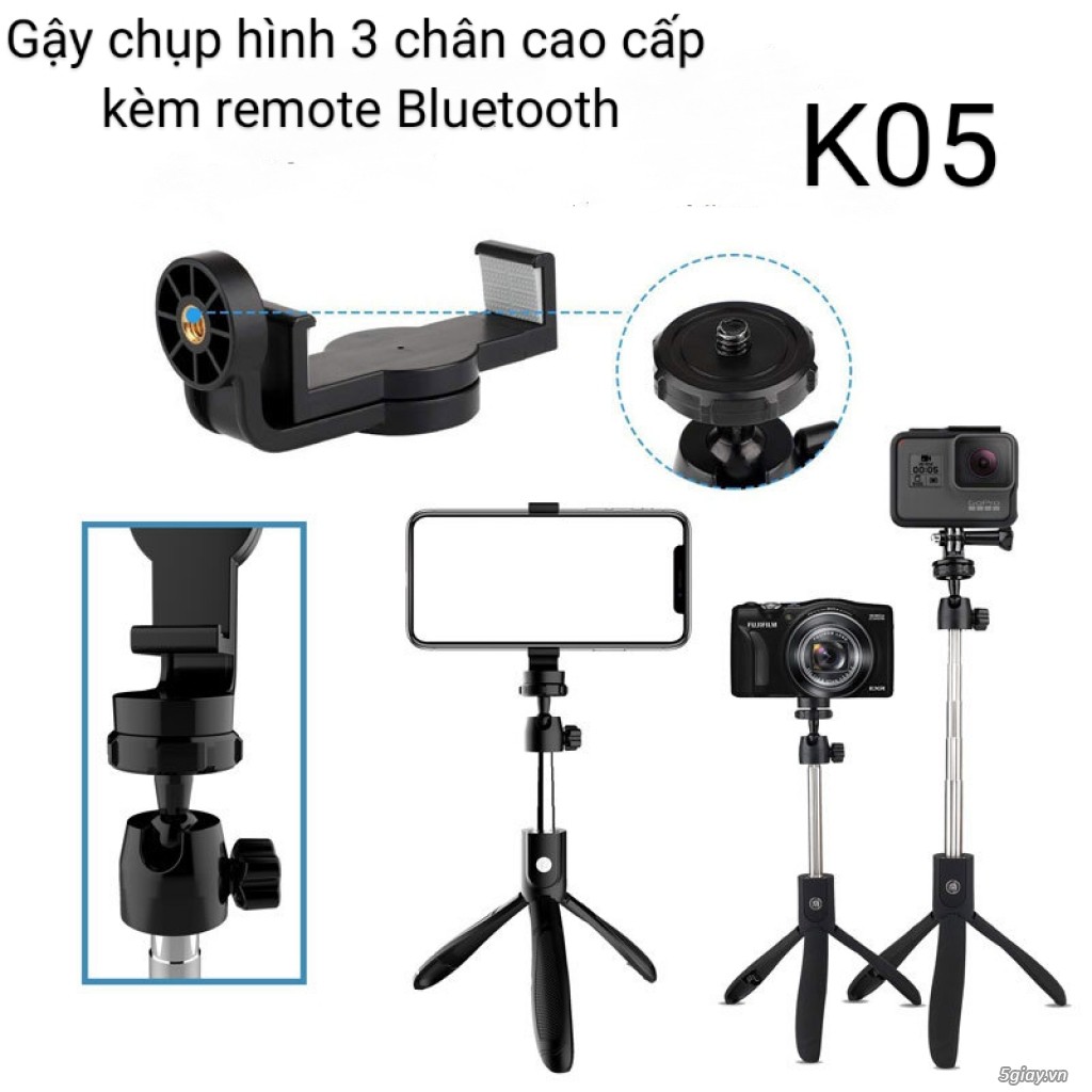 Điện Thoại & Phụ Kiện > Phụ kiện > Phụ kiện selfie > Điều khiển chụp hình || Gậy Chụp Hình 3Chân K05 Kèm Remote Bluetooth Chắc Chắn,Giá RẻCòn hàng