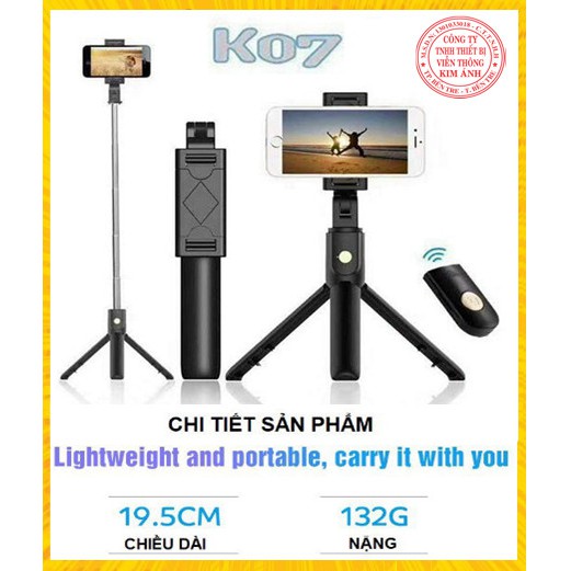 Điện Thoại & Phụ Kiện > Phụ kiện > Phụ kiện selfie > Gậy selfie || Gậy Chụp Hình Bluetooth K07, Gía Đỡ Điện Thoại Selfie, Gậy Chụp Hình 3 ChânCòn hàng