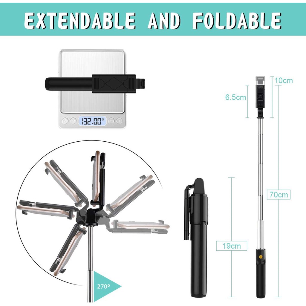 Đa năng: gậy chụp ảnh tự sướng, giá đỡ điện thoại xem phim, live stream, Tripod chụp ảnh từ xa với nút bấm Bluetooth