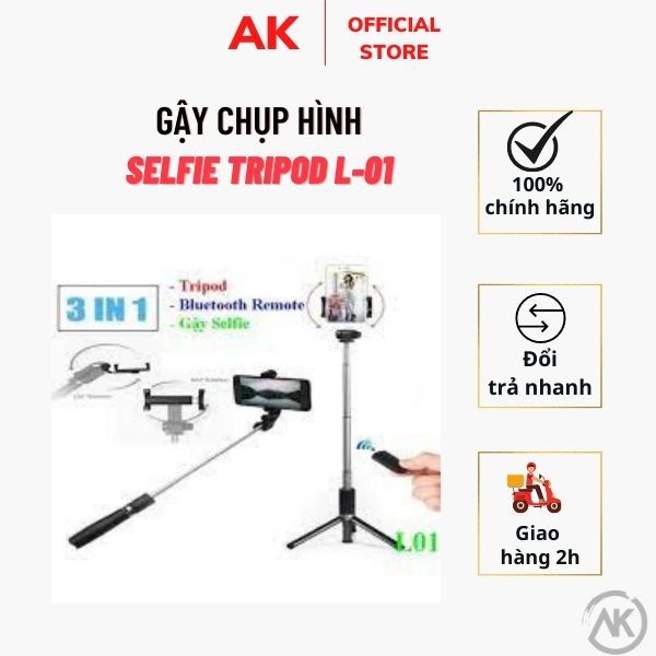 Điện Thoại & Phụ Kiện > Phụ kiện > Phụ kiện selfie > Gậy selfie || Gậy chụp hình Selfie CAO CẤP Gậy chụp hình Stick Tripod L01 Có 3 Chân Đỡ - Nút Bấm Bluetooh Hàng Cao CấpCòn hàng