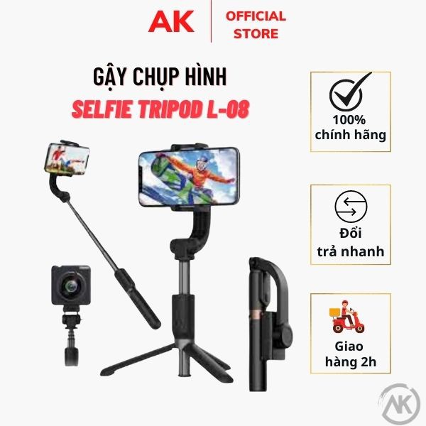 Điện Thoại & Phụ Kiện > Phụ kiện > Phụ kiện selfie > Gậy selfie || Gậy chụp hình Selfie CAO CẤP Gậy Chống Rung Gimbal Stabilizer L08 - Có 3 Chân Đỡ - Nút Bấm Bluetooh Hàng Cao CấpCòn hàng