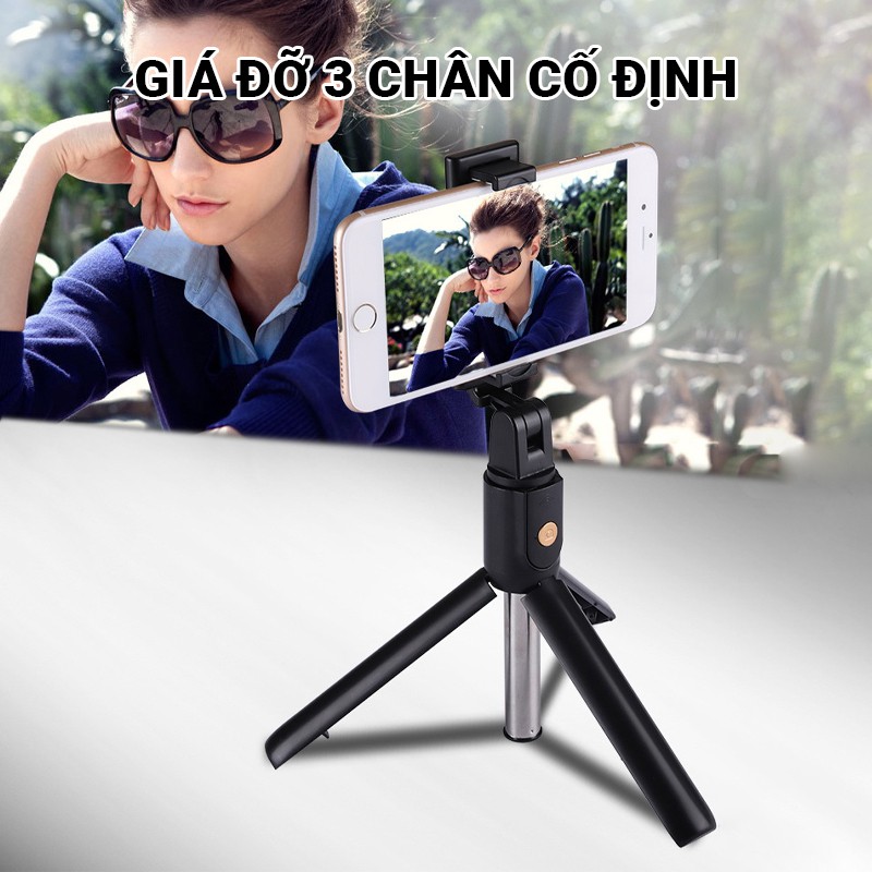 Điện Thoại & Phụ Kiện > Phụ kiện > Phụ kiện selfie > Gậy selfie || Gậy chụp hình selfie có giá đỡ 3 chân điều chỉnh độ cao, nhỏ gọn dễ mang theo, remote bluetooth chụp ảnh từ xa tiện lợiCòn hàng