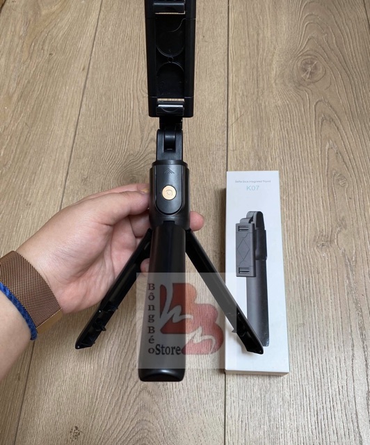 Gậy Tự Sướng Bluetooth K07 là một sản phẩm “lai” giữa gậy tự sướng với chân chụp ảnh (tripod). Thiết kế Tripod 3 chân gọn gàng, chắc chắn, bạn không cần đến phó nháy vẫn có được 1 bức ảnh đẹp từ mọi góc độ.