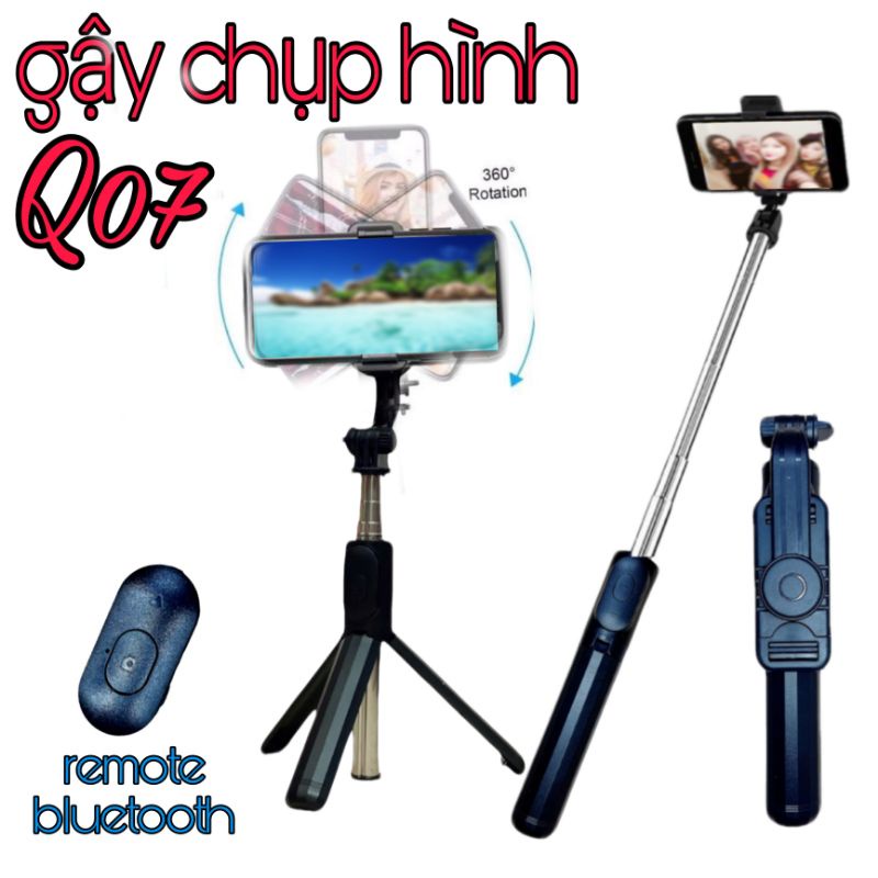 Điện Thoại & Phụ Kiện > Phụ kiện > Phụ kiện selfie > Gậy selfie || gậy chụp hình tripod 2in1 Q07 có remote bluetoothCòn hàng