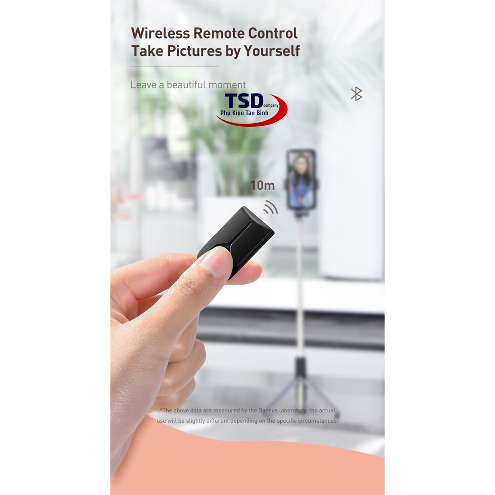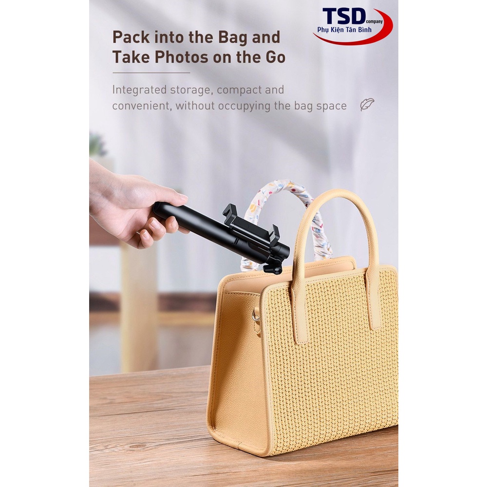 - Sản phẩm Gậy selfie tích hợp chân Tripod Baseus Lovely có trang bị điều kiển bluetooth, giúp bạn chủ động hơn trong việc chụp ảnh.