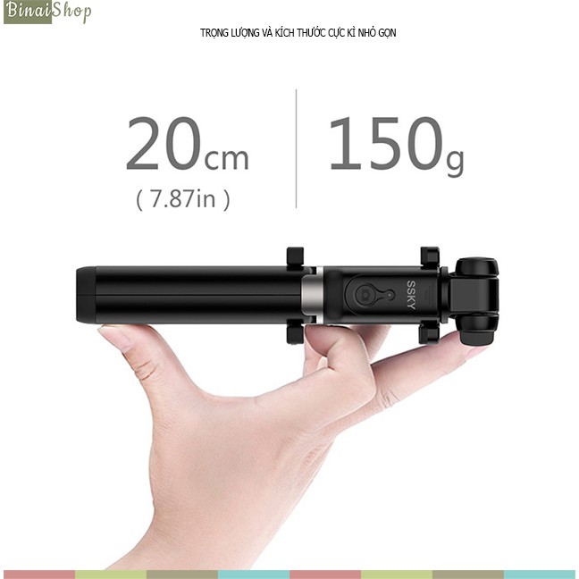 - Sử dụng công nghệ bluetooth 3.0 để chụp hình, không cần dây cáp kết nối và không bị trễ thời điểm như các loại gậy chụp hình khác.