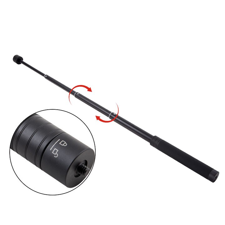 Gậy Extension pole thao tác rất đơn giản chỉ cần xoay nhẹ thuận kim đồng hồ là khóa lại và muốn mở ra thì xoay nhẹ ngược lại là mở ra, Gậy Extension pole thế hệ mới này giúp bạn quay phim chụp hình trong mọi điều kiện khác nhau đi bộ, đi du lịch , đi lặn biển không sợ bị oxi hóa hoặc rỉ sét, gậy làm bằng hợp kim nhôm nhẹ và chắc chắn.