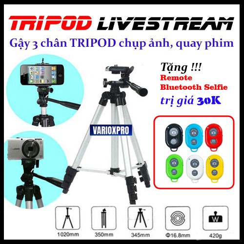 Gậy giá đỡ chụp hình quay phim TRIPOD - có kèm theo kẹp điện thoại