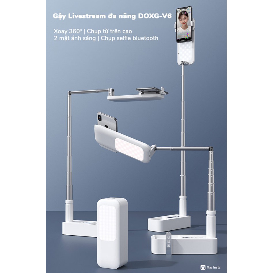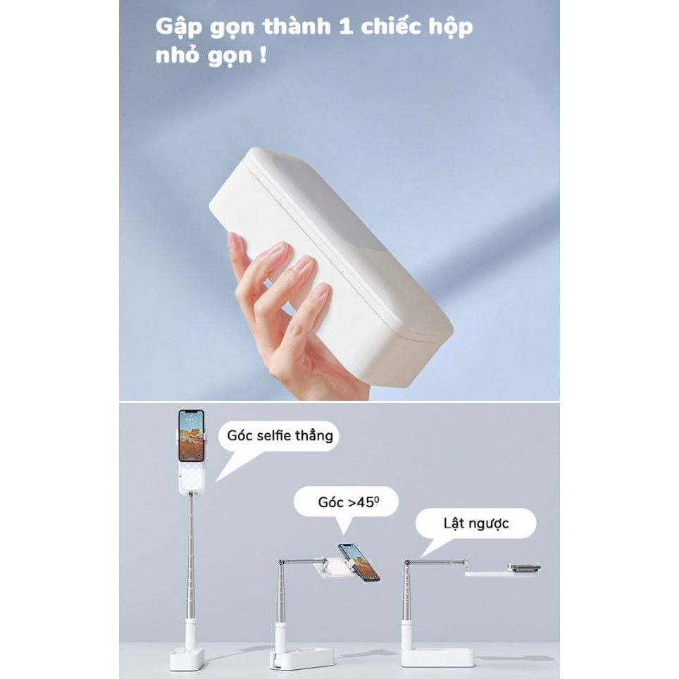 - Gậy livestream đa chức năng, gập mở gọn gàng trong 1 chiếc hộp, dễ dàng mang đi mọi nơi mà không phải mất công lắp ghép như các thiết bị khác