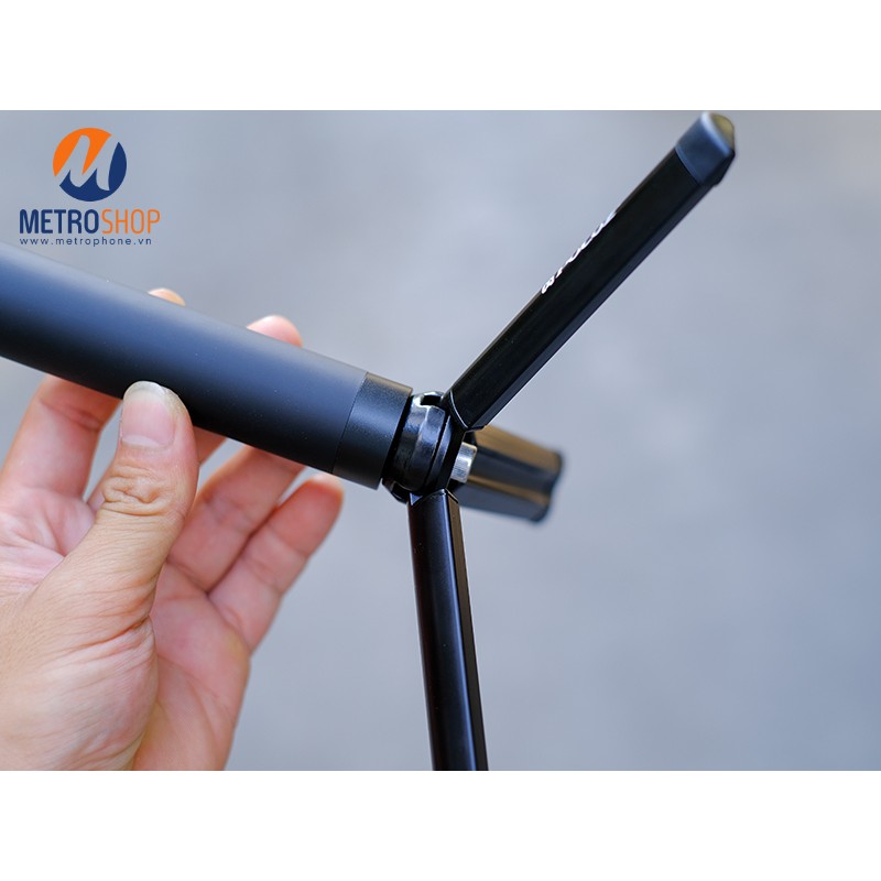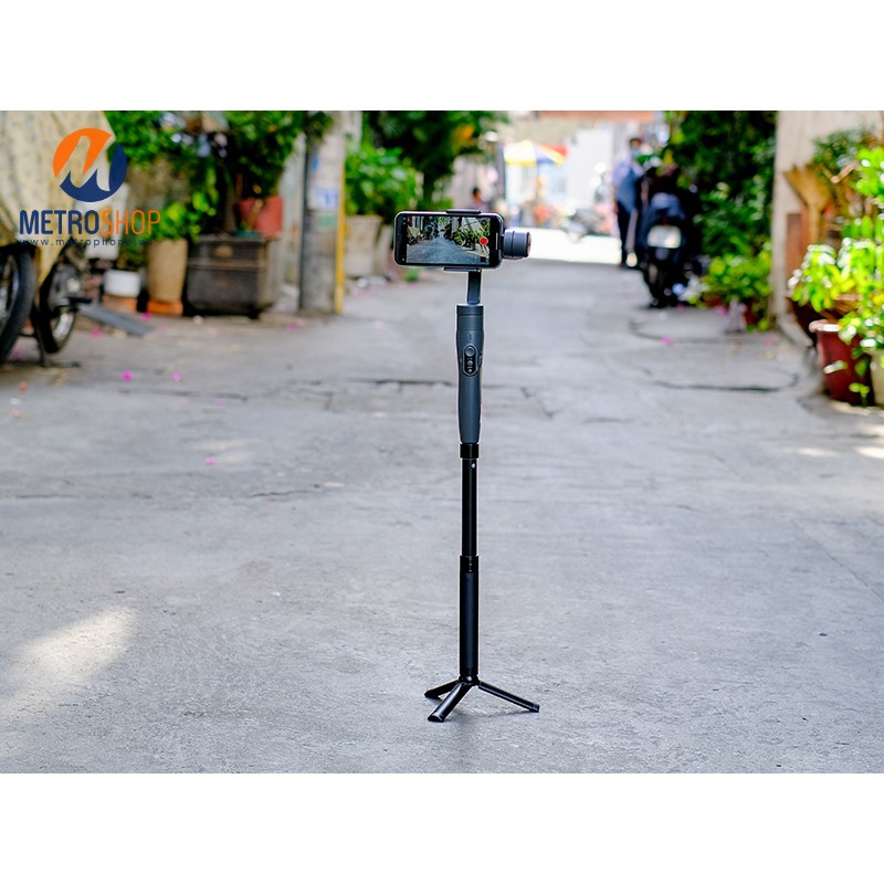 Nếu trong bộ Gimbal điện thoại của bạn có sẵn chiếc chân đế mini. Bạn có thể linh động gắn vào phía dưới chiếc gậy nối dài Gimbal này. Biến nó thành một chân đứng. Nếu cảm thấy chiếc tripod 3 chân đi kèm quá yếu. Bạn cũng có thể chọn mua cho mình một bộ đầy đủ bao gồm gậy và chân mini. Sau đây là một số hình ảnh Metrophone gắn cùng chân mini.