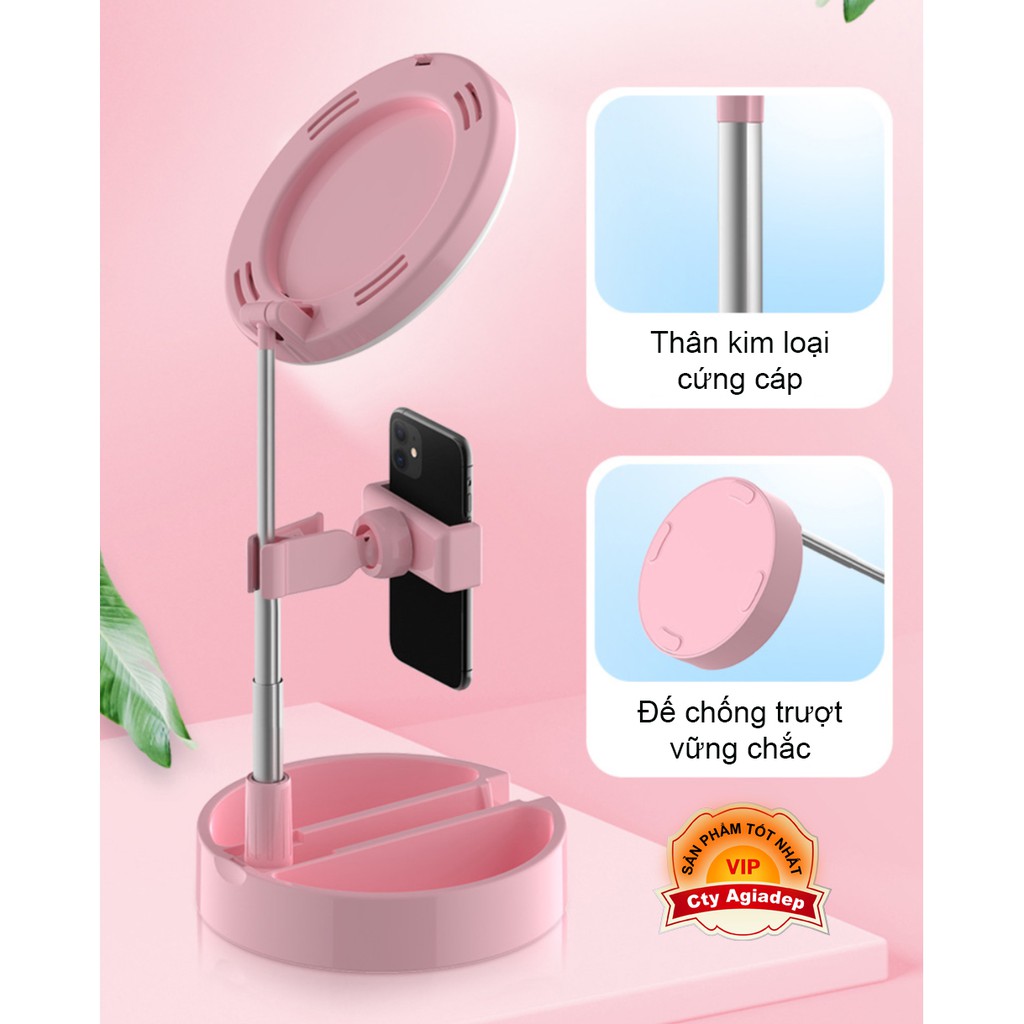 Gậy quay video Gấp gọn (Loại xịn) chụp ảnh livestream với đèn LED 3 màu Vàng-Cát-Trắng AGD 58cm G3