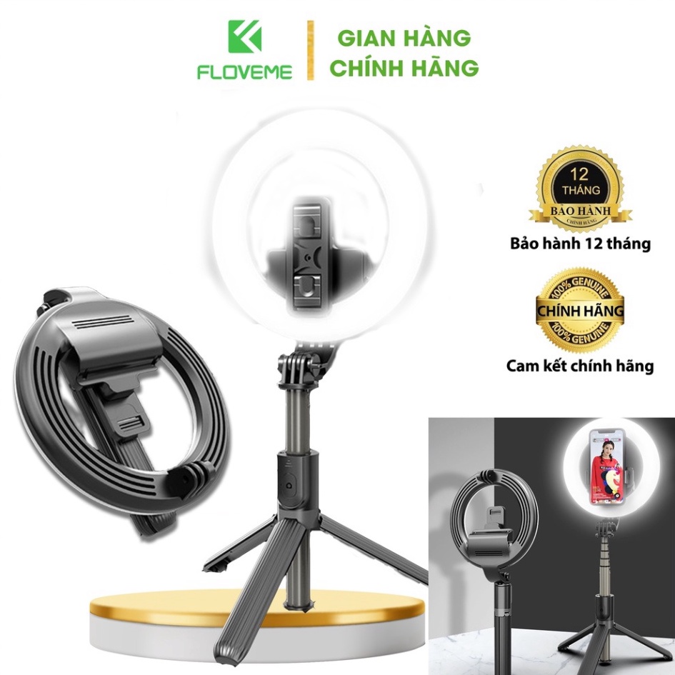 Gậy selfie Floveme -L07 kiêm giá đỡ hỗ trợ Live stream tích hợp vòng đèn Led, Bluetooth 4.0 tiện lợi, Pin 12000 mAh .