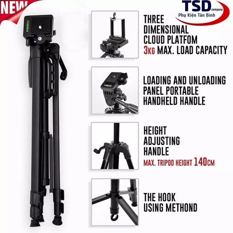 Điện Thoại & Phụ Kiện > Phụ kiện > Phụ kiện selfie > Giá đỡ || Gậy Tripod 3 Chân 3366 Cho Máy Ảnh, Điện Thoại Chiều Cao Tối Đa 1m50Còn hàng