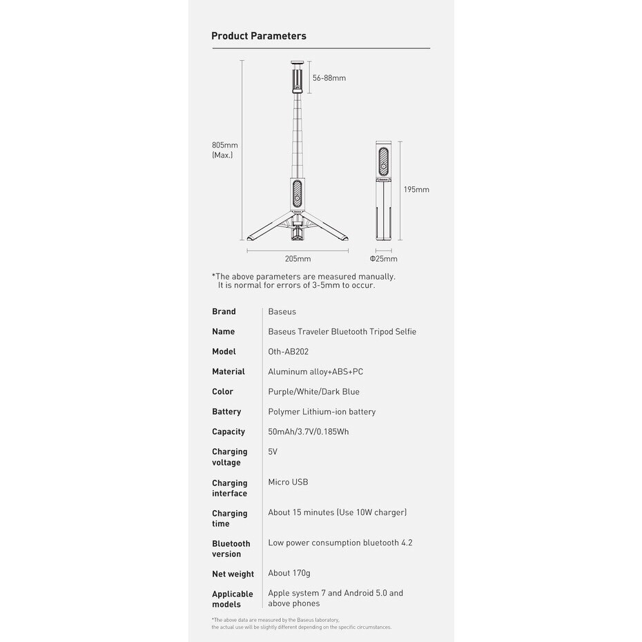 Gậy Tripod Chụp Ảnh Và Giá Đỡ Điện Thoại Có Bluetooth Gấp Gọn Baseus Traveler Bluetooth Tripod Selfie Stick.🌟 Thông tin sản phẩm