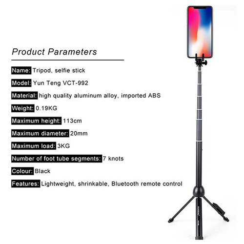 - Chân đế kiêm gậy chụp hình bluetooth Yunteng VCT-992 với thiết kế mới nhỏ gọn tiện lợi hơn so với các phiên bản trước đây.