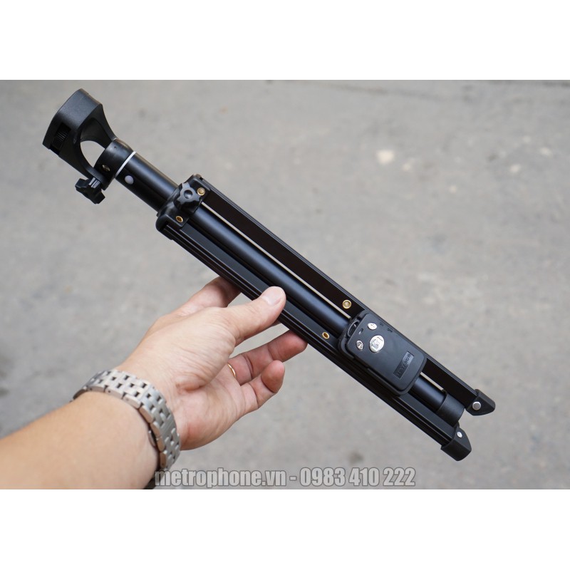 Chân đế chụp hình điện thoại có thiết kế nhỏ gọn tiện dùng mang theo khi đi chơi, chân có thể kéo dài tối đa lên tới 1.34m, và thu gọn chỉ còn 30cm.