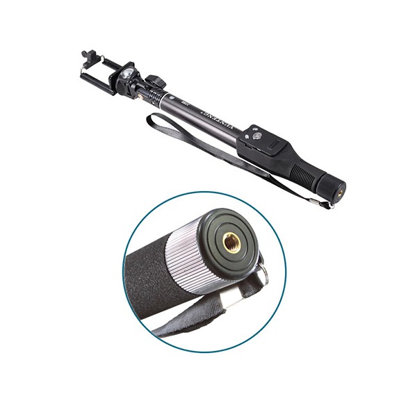 Gậy tự sướng Bluetooth Yunteng YT-2288, chiều dài tối đa của gậy được 1,25m và thu gọn lại chỉ có 29cm gọn hơn rất nhiều so với phiên bản YT-1288. YT-2288 dùng khóa xoay từng khớp của gậy nên gọn hơn, chất liệu hợp kim nhôm và nhựa ABS nên gậy rất chắc chắn cứng cáp. Trong bộ sản phẩm có sẵn một dây đeo cổ tay để sử dụng tránh rơi khi đang sử dụng.
