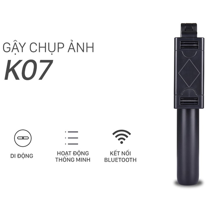 - Selfie đỉnh cao với gậy chụp ảnh K07 kiêm tripod siêu gọn nhẹ, chắc chắn. Nút bấm điều khiển từ xa giúp bạn tự lưu lại những bức ảnh chuyên nghiệp mà không cần nhờ người khác giúp đỡ.