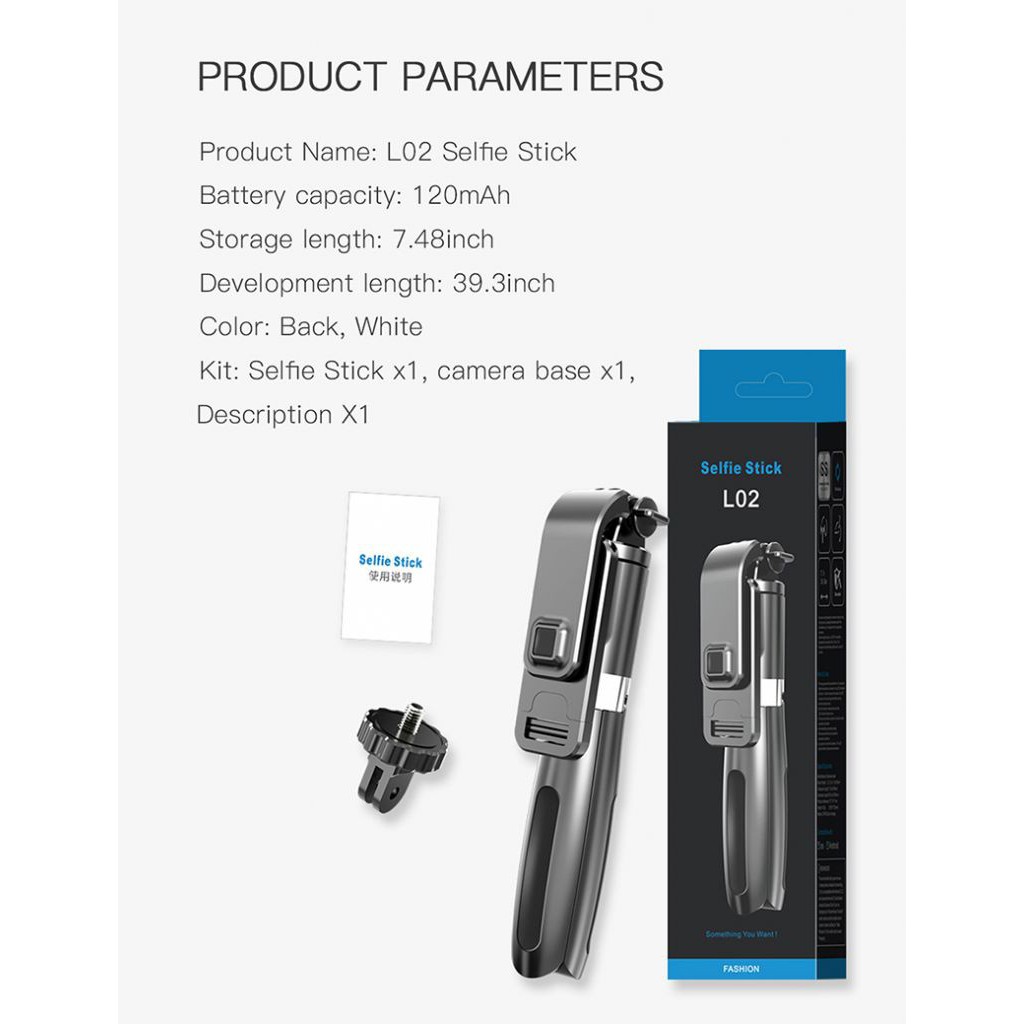 Điện Thoại & Phụ Kiện > Phụ kiện > Phụ kiện selfie > Gậy selfie || Gậy tự sướng có bluetooth điều khiển remote kiêm tripod 3 chân có giá kẹp điện thoại xoay 360 độ, Điều Khiển Từ Xa L02STCòn hàng