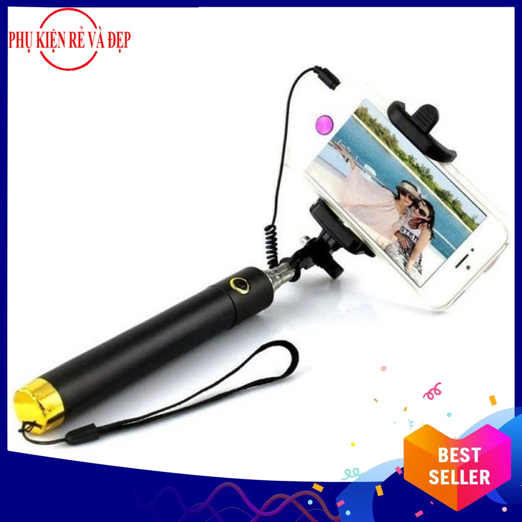 - Với ANDROI - cắm dây trên gậy vào chân tai nghe - bật camera => Cài đặt => Sử dụng phím âm lượng => chọn là chụp. OK.