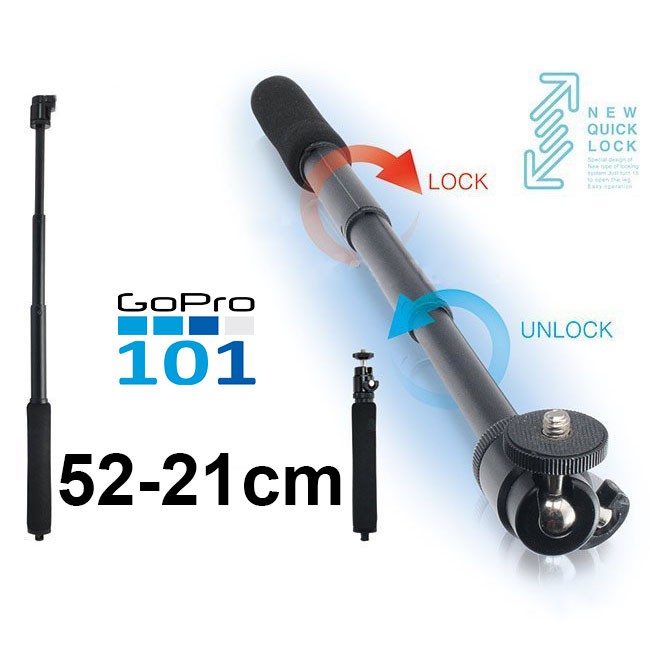 Gậy tự sướng kéo dài 52cm cho GoPro, Osmo, SJcam có Ballhead quay 360 độ - GoPro101 - inoxnamkim