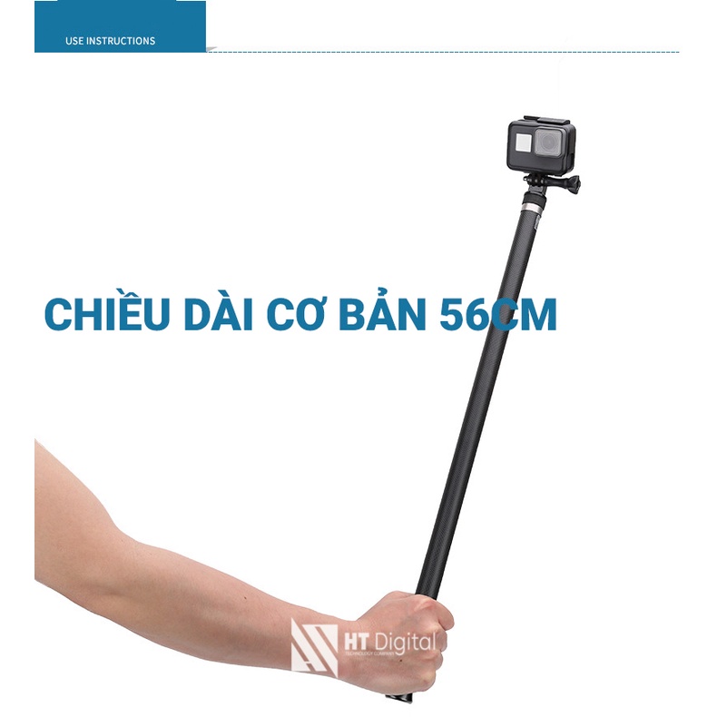 Gậy chụp hình GoPro Telesin có chiều dài cực đại 270cm (106") và chiều dài ngắn nhất là 56cm
