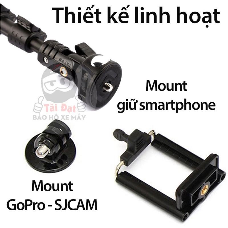 Phụ kiện gậy tự sướng chuyên selfie chụp ảnh/quay phim gắn cho máy quay thể thao, camera hành trình đi phượt. Giúp người dùng thoải mái, tự do sáng tạo không giới hạn các góc quay hay chụp ảnh. Nhằm tạo ra những thước phim, cảnh quay hay khung hình tuyệt đẹp mà bình thường mình không có được.Sử dụng được cho tất cả các dòng camera Hero GoPro như 3 Silver, 3+ Black, 4 Silver, 4 Black. Ngoài ra các camera hành trình của SJCAM như SJ4000, SJ5000, camera Xiao Yi cũng gắn được cho gậy tự sướng selfie này.