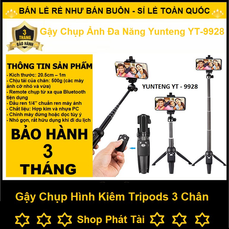 - Gậy chụp hình đa năng kèm chân Yunteng YT-9928, mẫu gậy đa năng mới nhất của hãng. Với thiết kế mới nhỏ gọn tiền dùng hơn so với các phiên bản cũ.