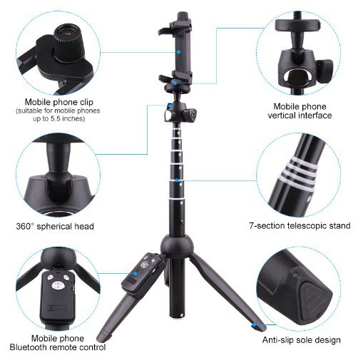 - Gậy tự sướng kèm chân Yunteng YT-9928, kích thước nhỏ gọn chỉ 20.5cm và kéo dài tối đa tới 1 mét