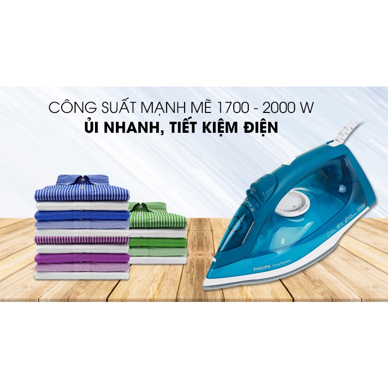 - Bàn ủi hơi nước Philips GC1756/20 làm nóng nhanh, ủi hiệu quả với công suất 1700 - 2000W, tiết kiệm thời gian