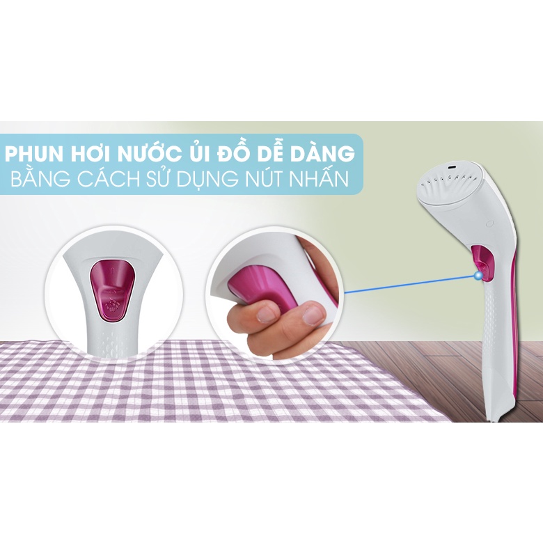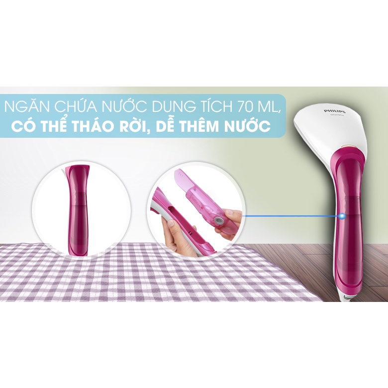 - Bàn ủi hơi nước có bình chứa nước nhỏ dung tích 70 ml, có thể tháo rời, tiện châm nước