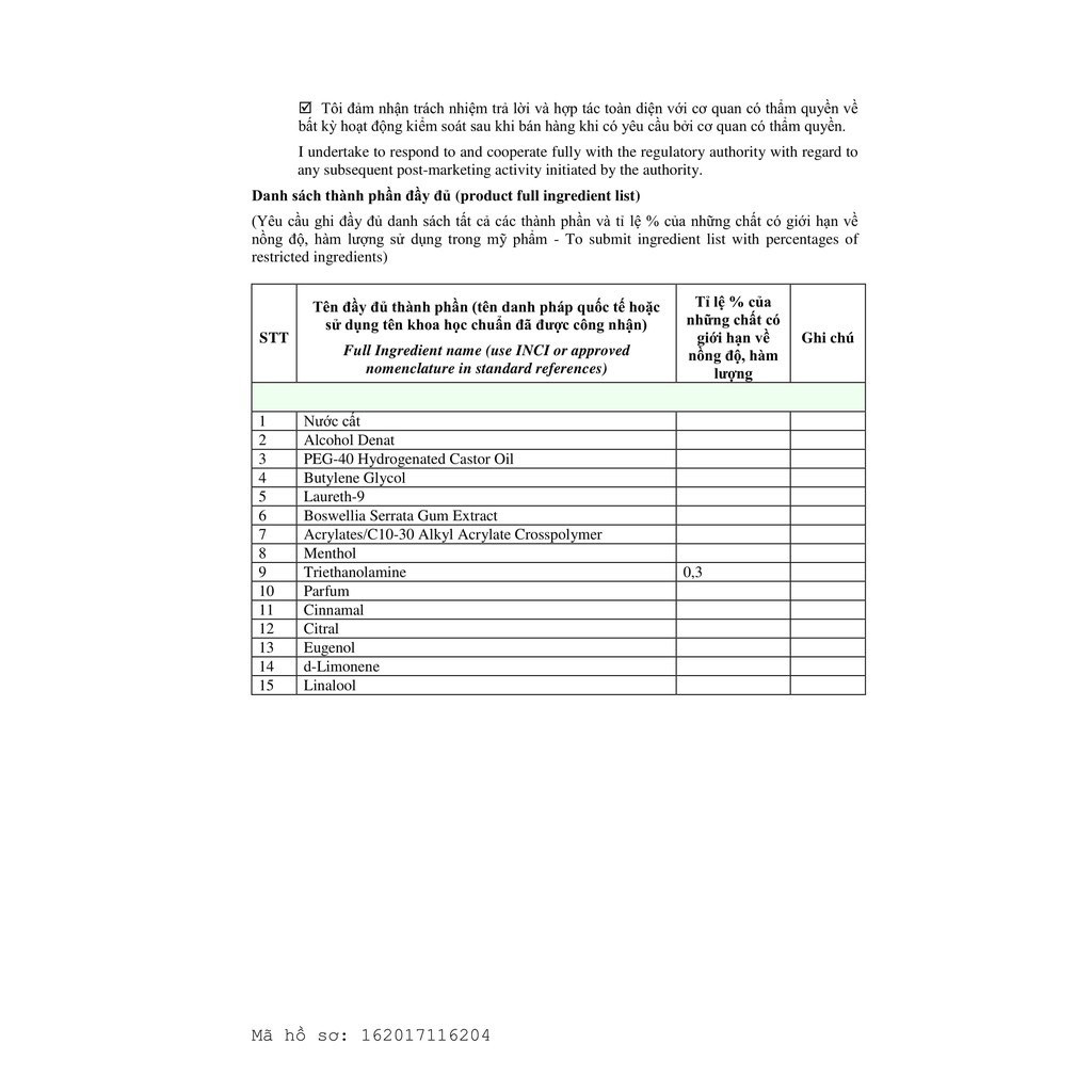 👉- Các thành phần khác có trong gel hỗ trợ kháng viêm, chống viêm và làm mát một cách nhẹ nhàng, êm dịu.