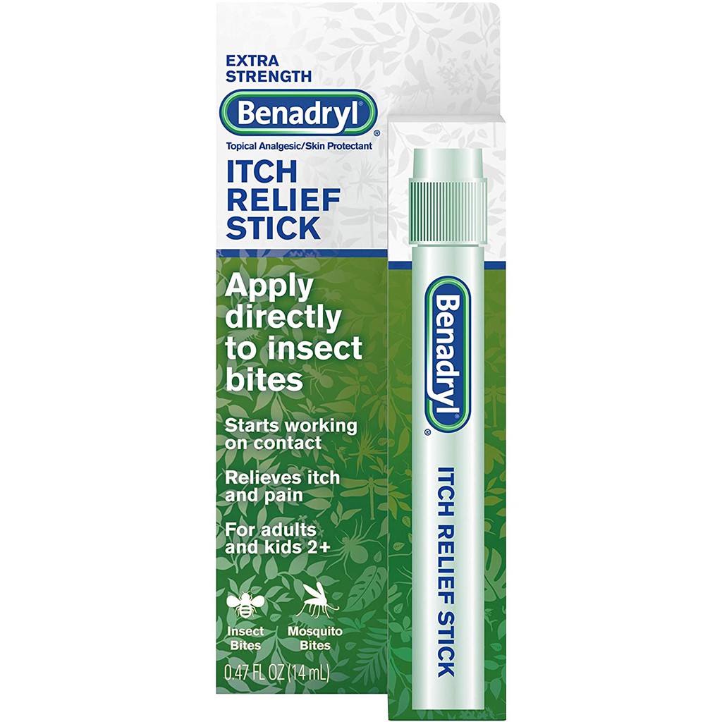 GEL LĂN GIẢM NGỨA CÔN TRÙNG CẮN Benadryl Extra Strength Itch Relief Stick, Topical Analgesic for Pain & Itch, 14ml- Benadryl giúp giảm ngứa, đau nhức do côn trùng đốt, muỗi chích, nắng rát da, vết xước, nứt nẻ, da khô.