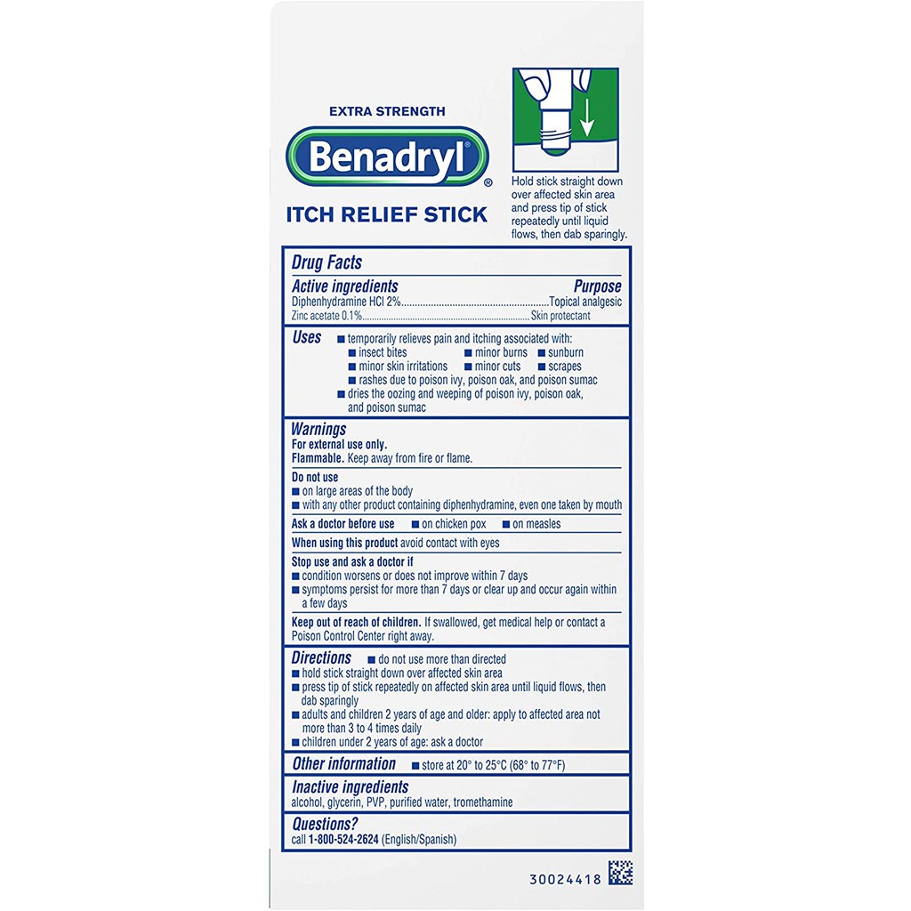 Sức Khỏe > Chăm sóc cá nhân > Chống muỗi & xua đuổi côn trùng || GEL LĂN GIẢM NGỨA CÔN TRÙNG CẮN Benadryl Extra Strength Itch Relief Stick, Topical Analgesic for Pain & Itch, 1Còn hàng