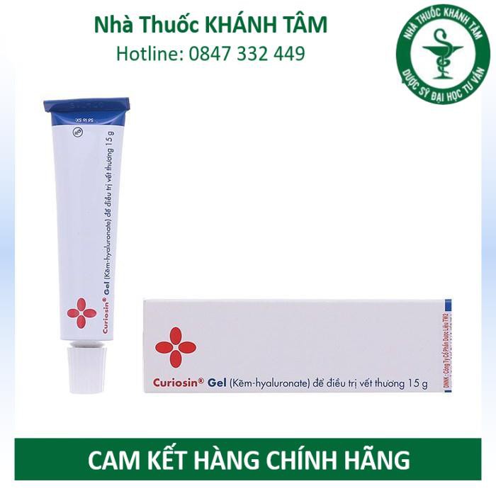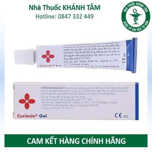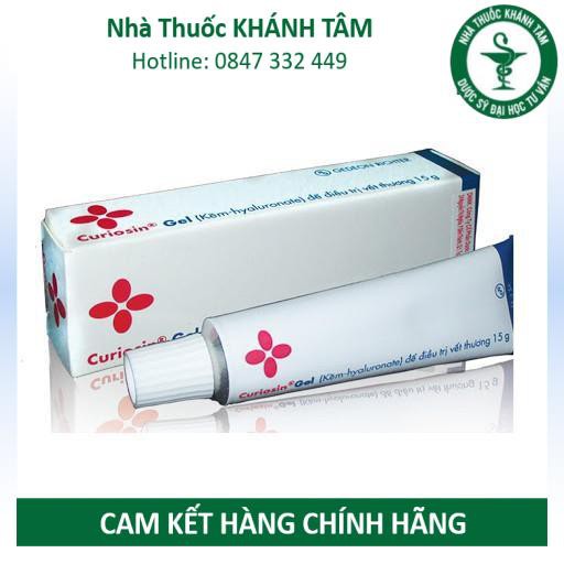 ***Khánh Tâm Pharma cam kết chỉ bán sản phẩm còn dài hạn sử dụng và có nguồn gốc rõ ràng.Gel mờ sẹo, mờ vết thâm Curiosin là một loại gel trong suốt, không màu, không làm bẩn da và quần áo. Thành phần chủ yếu của Curiosin là Hyaluronate kẽm, với hàm lượng là 15.4mg trong một ống 15g. Ngoài ra Curiosin gel còn chứa các chất khác là: Carbomera (chất tạo gel), Kali Sorbat (chất bảo quản), nước cất pha tiêm.