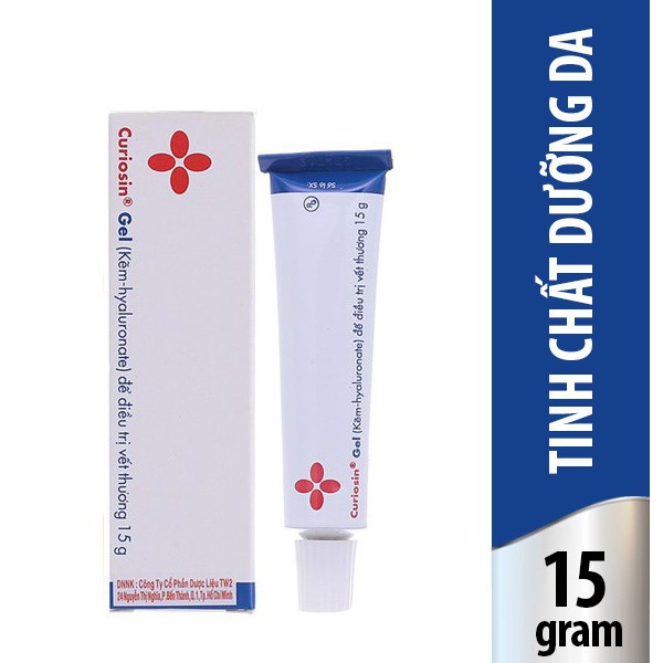 Gel mờ sẹo, mờ vết thâm Curiosin là một loại gel trong suốt, không màu, không làm bẩn da và quần áo. Thành phần chủ yếu của Curiosin là Hyaluronate kẽm, với hàm lượng là 15.4mg trong một ống 15g. Ngoài ra Curiosin gel còn chứa các chất khác là: Carbomera (chất tạo gel), Kali Sorbat (chất bảo quản), nước cất pha tiêm.Thành phần: