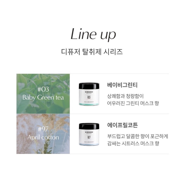 Nhà cửa & Đời sống > Chất khử mùi, làm thơm nhà > Khác || Gel thơm khử mùi W.DRESSROOM Dress&Living Deodorant NO.97 April Cotton, NO.03 Baby Green Tea.Còn hàng