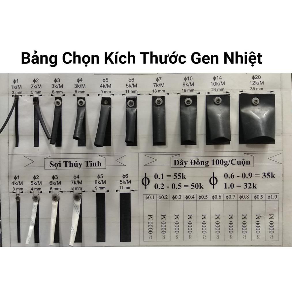 Đường kính: từ Φ1 tới Φ10mm ± 0.4mmChiều dài gen co nhiệt: 1m
