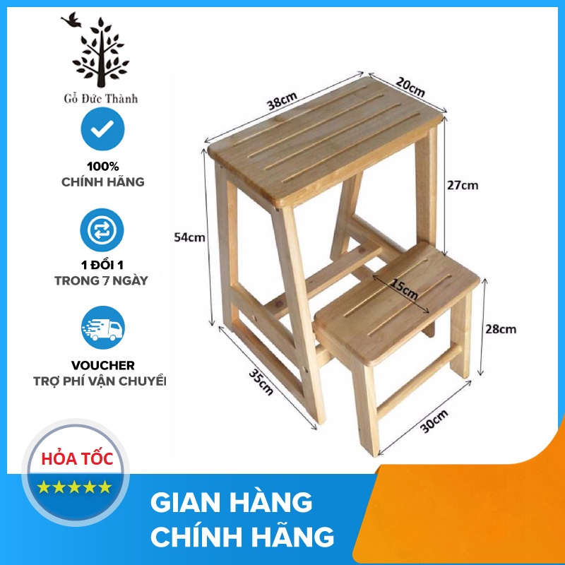 Ghế 2 tầng được sản xuất hoàn toàn bằng gỗ tự nhiên, đã xử lý qua quy trình công nghệ tiên tiến, chống mối mọt, chống ẩm tốt, đạt tiêu chuẩn xuất khẩu. Sản phẩm được thiết kế với bề mặt gỗ dày, chân ghế có kết cấu vững chắc, chịu lực tốt. Với vân gỗ sáng đẹp và láng mịn, bạn có thể cảm nhận được khi sờ lên bề mặt ghế. Có thể sử dụng Ghế 2 tầng trong gia đình rất tiện lợi khi cần lấy các vật dụng ở trên cao trong tủ bếp, kệ treo hoặc dùng để thắp nhang cho bàn thờ v.v…KÍCH THƯỚC : 38 x 48 x 54 cm