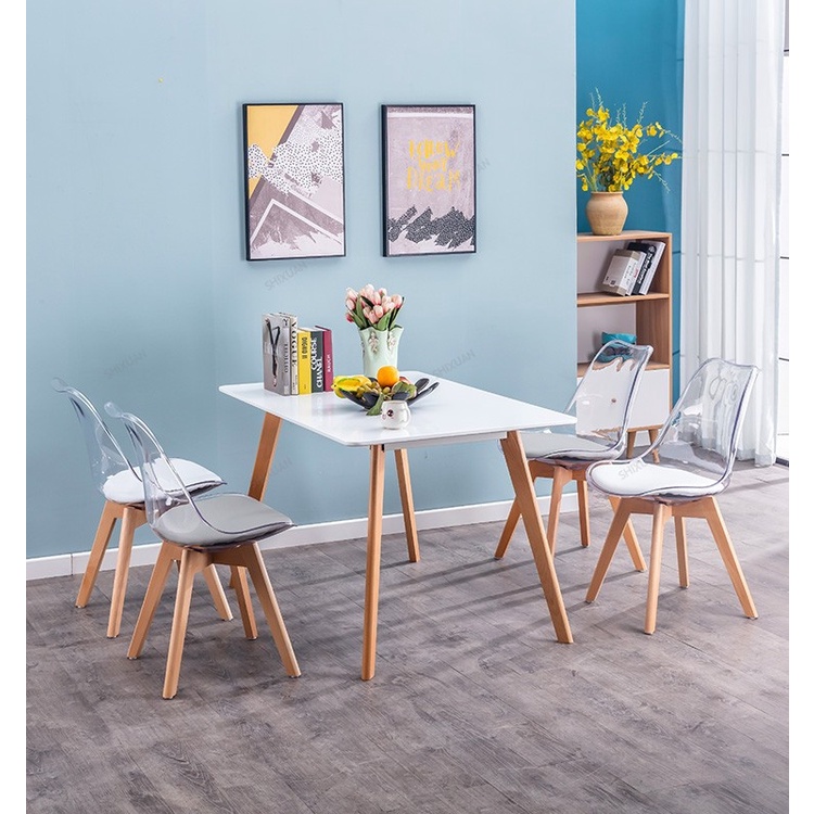 Giới thiệu Ghế ăn, cafe, học tập, làm việc lưng nhựa Pet có nệm chân gỗ