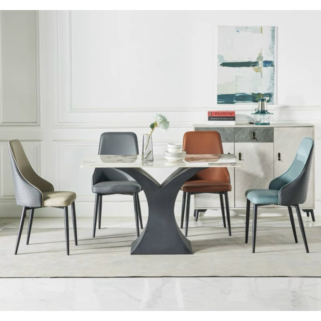 Ghế DINING với đa sắc màu, lưng được may nhấn nhá họa tiết caro, tạo lên dáng ghế vô cùng sang trọng. Được kết hợp với bàn ăn chân trụ sắt Sơn tĩnh điện, mặt đá Ceramic bóng , toát lên sự hiện đại, trẻ trungChất liệu ghế : Da công nghiệp cao cấp, chân sắt Sơn tĩnh điện.