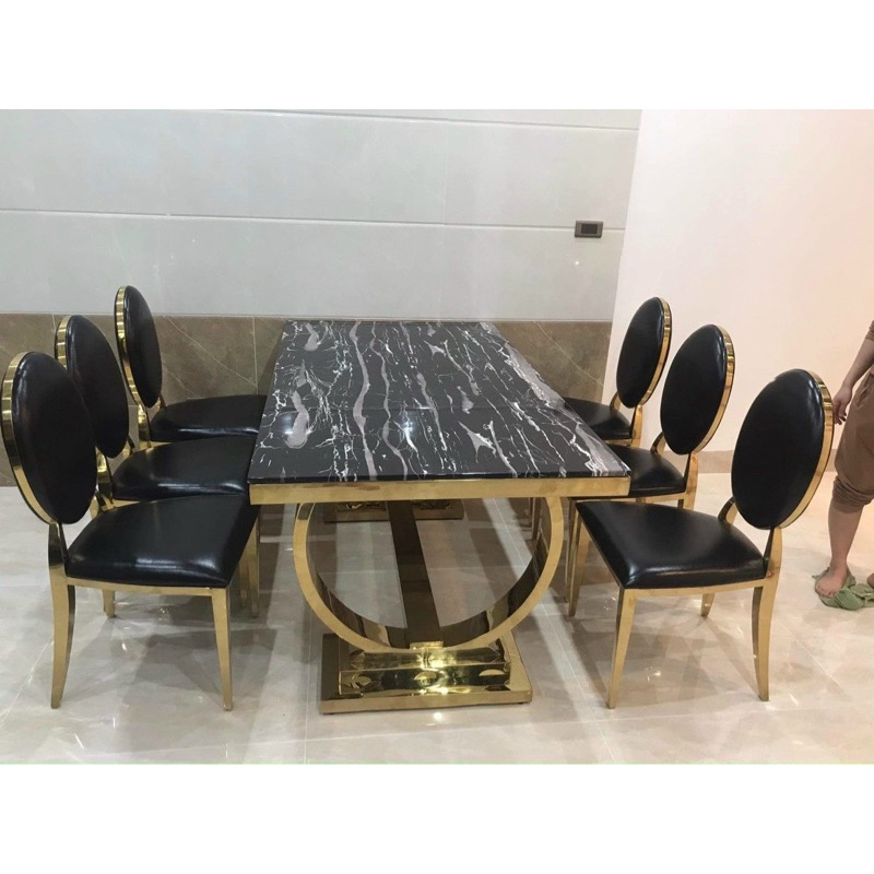 Chất liệu: ghế kim loại mạ vàng cao cấp bọc da đen
